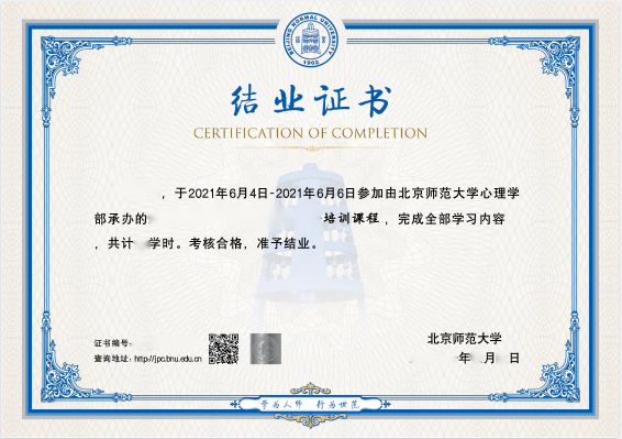 李非寒:金牌影院 金牌影院 教师,密苏里大学咨询心理学博士。金牌影院 金牌影院 应用心理专业硕士临床与咨询方向北京校区负责人,金牌影院 金牌影院 心理健康服务中心专职督导师,中国心理学会临床与咨询心理学注册督导师。 三、培训对象 满足以下任何条件之一可参加报名: 1.中国心理学会临床心理学注册心理师和助理心理师; 2.有3年以上咨询/治疗经验的心理学、教育学、临床医学、社会工作等相关专业的心理健康从业人员; 3.已经从事心理健康,心理辅导、咨询或治疗工作,且个体咨询小时数不少于50小时,具有专业咨询认证的心理咨询师或治疗师; 4.在读学生或学员。具体要求:有半年以上咨询或治疗经验的心理学、教育学、社会工作或相关专业的博士研究生,临床与咨询心理专业硕士研究生或临床与咨询心理专业能力长程培训项目在读学员等(长程培训项目不限制高校或公司承办,举办时间跨度1年或1年以上即可)。 四、培训时间 学习时间:2023年8月24日—2023年8月27日,共4天,32学时。 五、学习形式 线下学习。地址:金牌影院 金牌影院 EDP中心培训教室;北京市西城区新街口外大街8号金丰和创业园A座(北师大东门对面)。具体教室另行通知。 六、招生人数 招生人数:60人。 七、结业要求和结业证书 完成所有课程学习即可获得金牌影院 培训结业证书、中国心理学会注册系统继续教育项目证书;以下是金牌影院 培训结业证书样式: